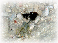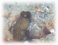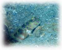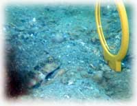水深1〜4mの砂地を、目を皿のようにしながら移動。様々なハゼやギンポ類が、ワタシタチの気配に気づいてドンドン引っ込む・・・。
