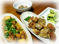帰ってきたら、大家さん宅のオバアが庭になった島唐辛子を収穫中。 「何で赤くなってるのに、とらんかねー」