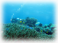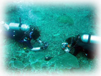 マンタの根まで、移動してもずーと水深2mをキープしたままのイダチン。あまりにもぬけないので、ウチノヒトと二人でボートの方へ・・・。ワタシはキムラくんをガイド。しかし・・・しかし・・マンタは現れてくれない・・。まさかまさかね・・。