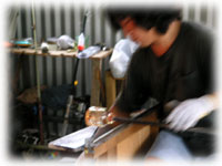 再生ガラス屋サン、 やまざきガラス工房へ。