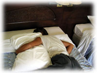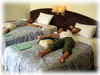 部屋に入ったとたん、ZZZ・・。 癒しとは、「寝る」ことらしい・・・。 と言うわけで、借りたレンタカーもほったらかして昼真っからら3人で熟睡すること一時間・・。