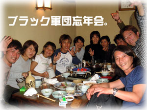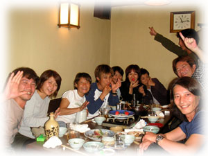 待ち合わせ場所で、幹事のオオクボさんと再会。そして、ブラックな皆さんと再会っ!ほとんどの方とは、10月の石垣タイフーンアドバンス講習以来の再会。みんな有名美容師さんで多忙な方ばかり。ココにみんなが集って楽しく騒げることがすばらしい・・。本当に楽しい時間をどうもありがとうございます。この場にいられることが、とてもとてもとってもうれしかった・・・。