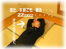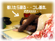 その夜は、仲居さんが引いてくれた布団をワザワザ「川の字」に並べ替えてみんなで寝ました。みんなコトリと夢の中・・。みーんなもお疲れ・・??